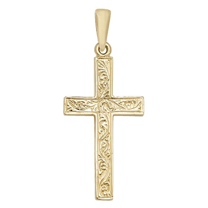 Boys 9ct Gold 31mm Patterned Cross Pendant