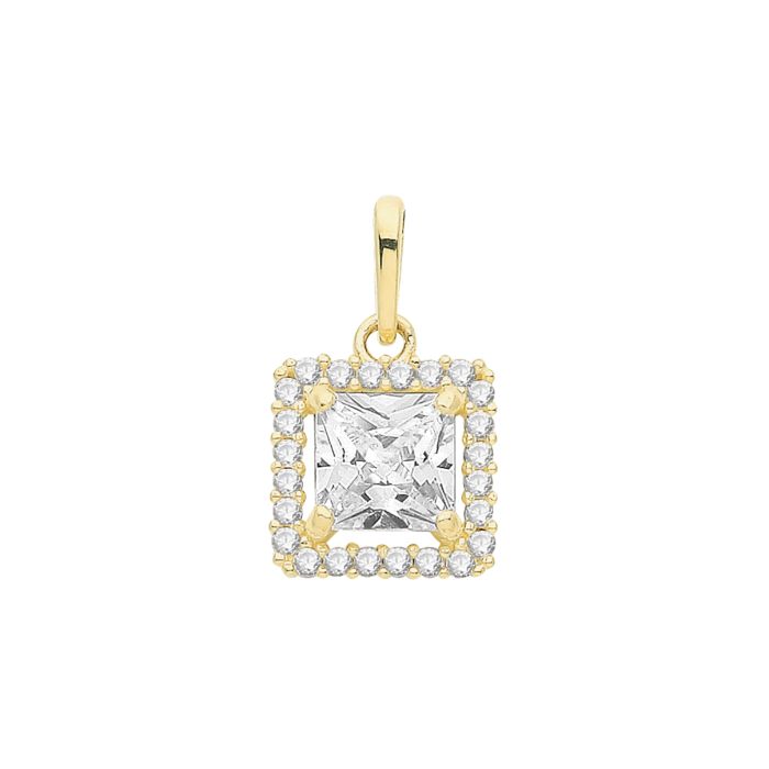 Boys 9ct gold 8mm cushion cubic zirconia pendant.