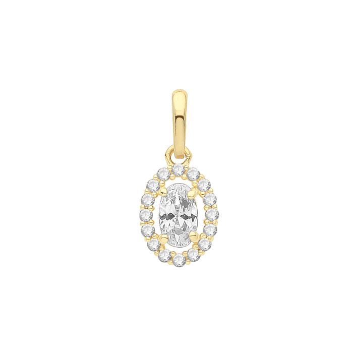 Boys 9ct gold 8mm oval cubic zirconia pendant.