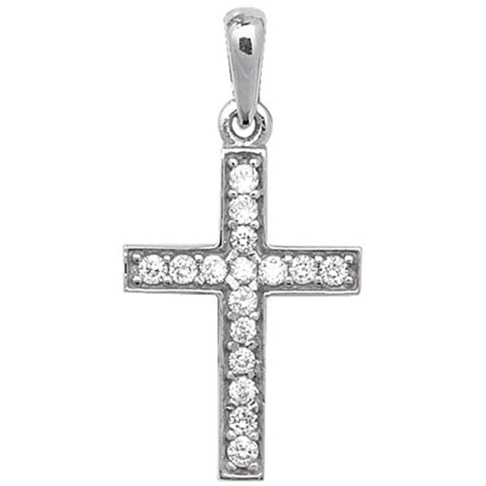Boys 9ct White Gold 15mm Cubic Zirconia Cross Pendant