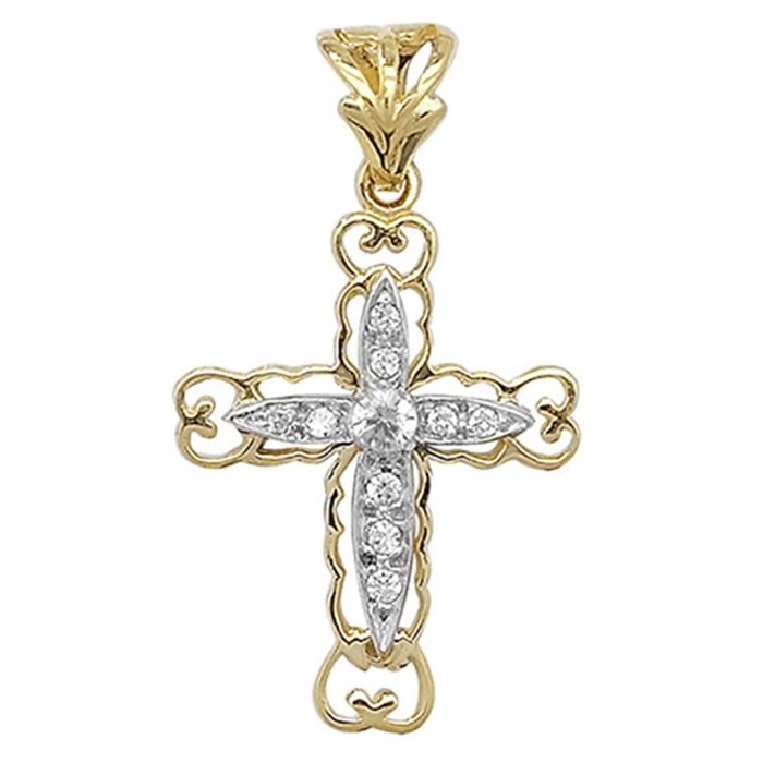 Boys 9ct Yellow and White Gold 20mm Cut Out Cubic Zirconia Cross Pendant