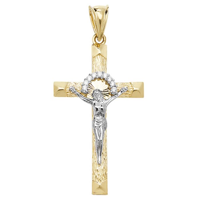 Description / Boys 9ct Yellow and White Gold 42mm Cubic Zirconia Crucifix Cross Pendant
