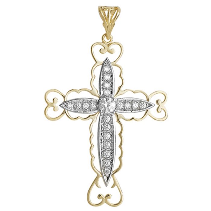 Boys 9ct Yellow and White Gold 52mm Cut Out Cubic Zirconia Cross Pendant