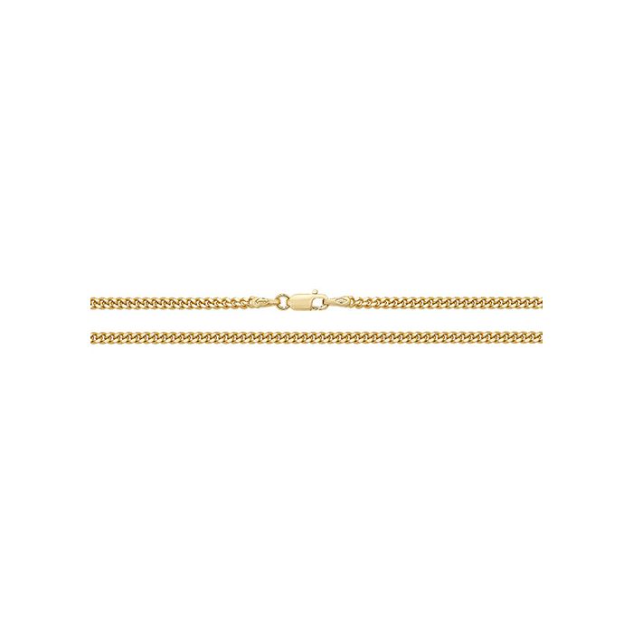 9ct gold 2.4mm close curb chain necklace.Available in lengths 16, 18, 20, 22, 24, 26, 28 and 30 inch.Approximate chain weights are:16 inch = 7 grams.18 inch = 7.8 grams.20 inch = 8.5 grams.22 inch = 9.2 grams.24 inch = 9.9 grams.26 inch = 10.6 grams.28 inch = 11.3 grams.30 inch = 12 grams.The chain will come to you in a pink Kraft gift box made from 100% recycled material containing a white eco-fibre fill with a World of Jewellery cleaning cloth.