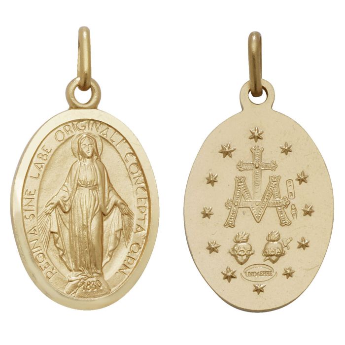 Girls 9ct gold 21mm plain double sided oval miraculous pendant.