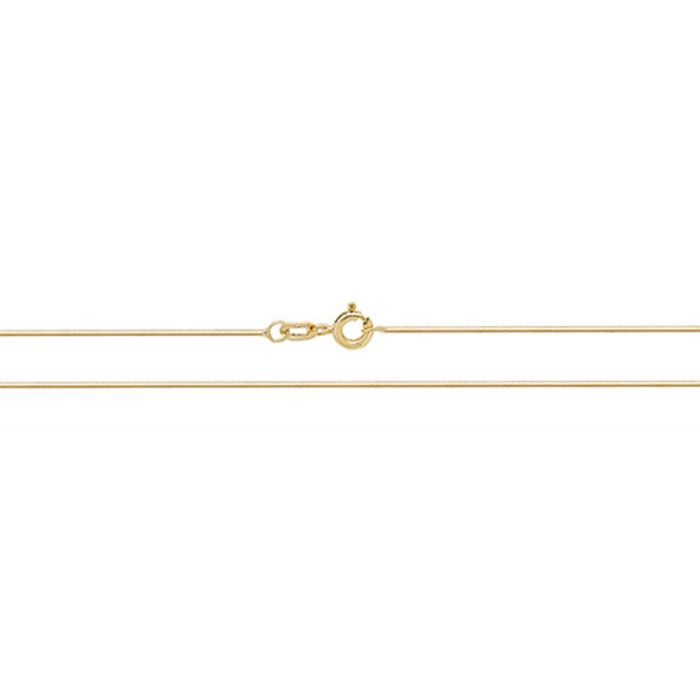 9ct gold diamond cut fine snake chain necklace.Available in lengths 16 and 18 inch.Approximate chain weights are:16 inch = 1.7 grams.18 inch = 1.9 grams.The chain will come to you in a pink Kraft gift box made from 100% recycled material containing a white eco-fibre fill with a World of Jewellery cleaning cloth.