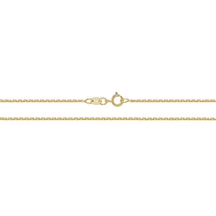 9ct gold diamond cut single link wheat spiga 1mm chain necklace.Available in lengths 16, 18 and 20 inch.Approximate chain weights are:16 inch = 1.6 grams.18 inch = 1.8 grams.20 inch = 2 grams.The chain will come to you in a pink Kraft gift box made from 100% recycled material containing a white eco-fibre fill with a World of Jewellery cleaning cloth.
