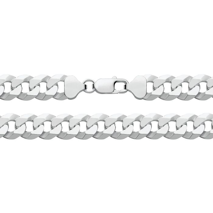 Sterling silver 12mm flat bevelled curb chain necklace.Available in lengths 20, 22, 24, 26, 28 and 30 inch.Approximate chain weights are:20 inch = 58.2 grams.22 inch = 64.1 grams.24 inch = 70 grams.26 inch = 75.9 grams.28 inch = 81.8 grams.30 inch = 87.7 grams.The chain will come to you in a pink Kraft gift box made from 100% recycled material containing a white eco-fibre fill with a World of Jewellery cleaning cloth.