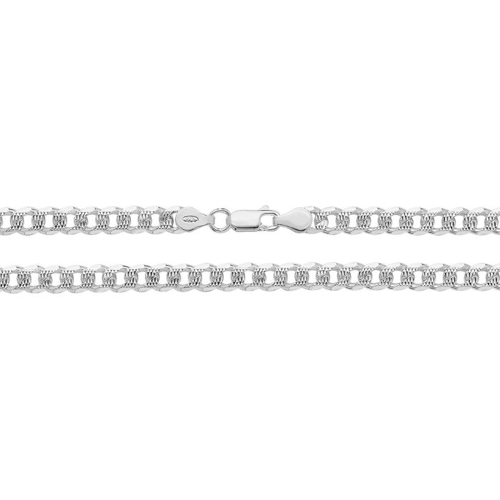 Sterling silver 6mm pave curb chain necklace.Available in lengths 18, 20, 22, 24, 26 and 30 inch.Approximate chain weights are:18 inch = 21.4 grams.20 inch = 23.19 grams.22 inch = 25.92 grams.24 inch = 28.08 grams.26 inch = 30.8 grams.30 inch = 35.6 grams.The chain will come to you in a pink Kraft gift box made from 100% recycled material containing a white eco-fibre fill with a World of Jewellery cleaning cloth.