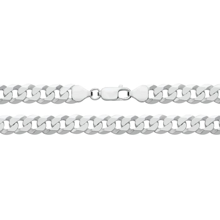 Sterling silver 8mm flat bevelled curb chain necklace.Available in lengths 20, 22, 24, 26, 28 and 30 inch.Approximate chain weights are:20 inch = 31 grams.22 inch = 34.1 grams.24 inch = 37.3 grams.26 inch = 40.4 grams.28 inch = 43.5 grams.30 inch = 46.6 grams.The chain will come to you in a pink Kraft gift box made from 100% recycled material containing a white eco-fibre fill with a World of Jewellery cleaning cloth.