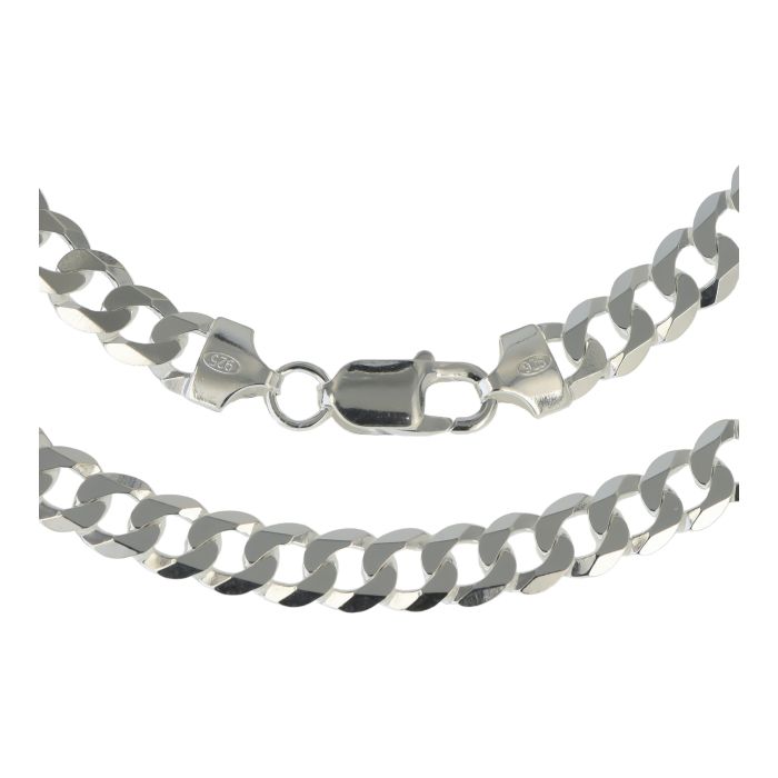 Sterling silver 9mm flat curb chain necklace.Available in lengths 18, 20, 22 and 24 inch.Approximate chain weights are:18 inch = 25.9 grams.20 inch = 28.78 grams.22 inch = 31.73 grams.24 inch = 34.63 grams.The chain will come to you in a pink Kraft gift box made from 100% recycled material containing a white eco-fibre fill with a World of Jewellery cleaning cloth.