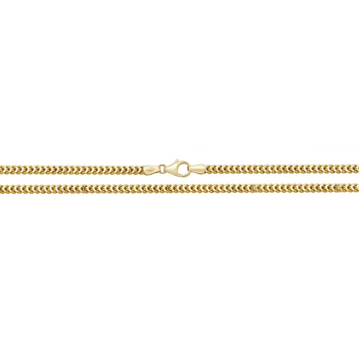 9ct gold 3mm square semi solid franco chain necklace.Available in lengths 16, 18, 20, 22, 24, 26, 28, 30, 32 and 34 inch.Approximate chain weights are:16 inch = 8.3 grams.18 inch = 9.4 grams.20 inch = 10.5 grams.22 inch = 11.6 grams.24 inch = 12.7 grams.26 inch = 13.8 grams.28 inch = 14.9 grams.30 inch = 16 grams.32 inch = 17.1 grams.34 inch = 18.2 grams.The chain will come to you in a black leatherette gift box with a World of Jewellery cleaning cloth.