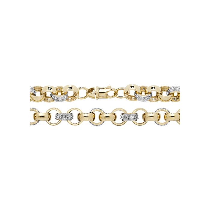 9ct gold 7mm patterned cubic zirconia set cast belcher chain necklace.Available in lengths 22, 24, 26, 28 and 30 inch.Approximate chain weights are:22 inch = 99.8 grams.24 inch = 109 grams.26 inch = 117 grams.28 inch = 126 grams.30 inch = 135 grams.The chain will come to you in a black leatherette gift box with a World of Jewellery cleaning cloth.
