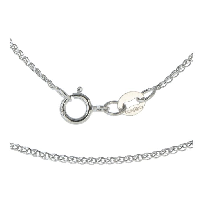 9ct white gold 1mm diamond cut single link wheat spiga chain necklace.