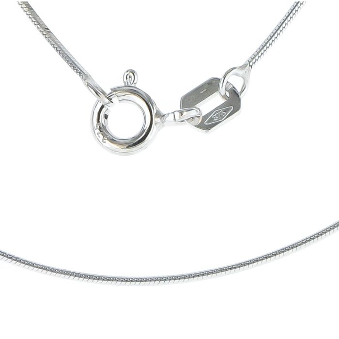 9ct white gold diamond cut fine snake chain necklace.Available in lengths 16 and 18 inch.Approximate chain weights are:16 inch = 1.8 grams.18 inch = 2 grams.The chain will come to you in a black leatherette gift box with a World of Jewellery cleaning cloth.