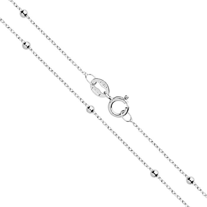 Mens 9ct White Gold Flat Trace and Bead Ball Chain Necklace 16 - 24 Inch