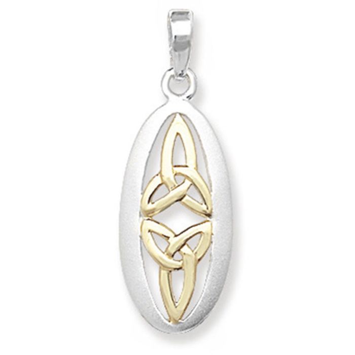 Sterling silver & gold plated oval celtic necklace.Pendant Height 20mm x Width 10mm.Approximate pendant weight 1.1 grams.This pendant will be supplied on a black leather cord necklace.The necklace will come to you in a black leatherette gift box and an Amandas Silver Boutique jewellery polishing cloth.