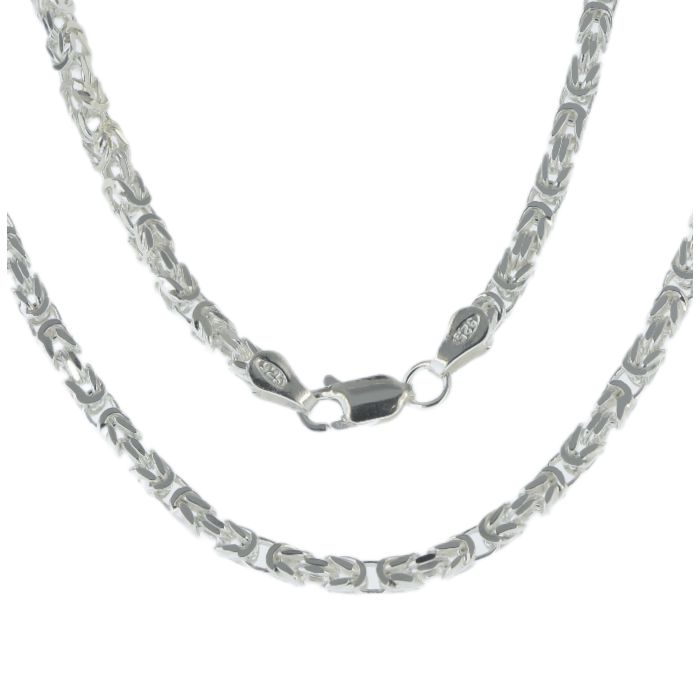 Sterling silver square byzantine 3mm chain necklace.Available in lengths 16, 18, 20, 22, 24, 26, 28 and 30 inch.Approximate chain weights are:16 inch = 13.86 grams.18 inch = 15.5 grams.20 inch = 17.38 grams.22 inch = 19.8 grams.24 inch = 21.69 grams.26 inch = 23.52 grams.28 inch = 25.07 grams.30 inch = 27.29 grams.The chain will come to you in a black leatherette gift box with a World of Jewellery cleaning cloth.