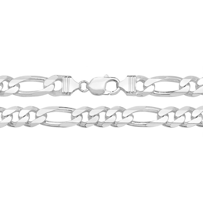 Sterling silver 10mm figaro chain necklace.Available in lengths 20, 22 and 24 inch.Approximate chain weights are:20 inch = 93.07 grams.22 inch = 102.38 grams.24 inch = 111.69grams.The chain will come to you in a black leatherette gift box with a World of Jewellery cleaning cloth.