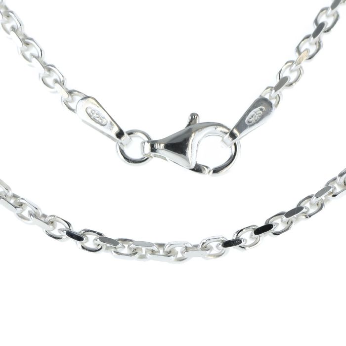 Sterling silver 2mm faceted belcher chain necklace.Available in lengths 16, 18, 20, 22 and 24 inch.Approximate chain weights are:16 inch = 4.7 grams.18 inch = 5.2 grams.20 inch = 5.7 grams.22 inch = 6.2 grams.24 inch = 6.7 grams.The chain will come to you in a black leatherette gift box with a World of Jewellery cleaning cloth.