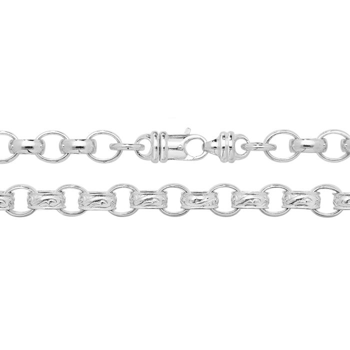 Sterling silver 7mm patterned oval cast belcher chain necklace.Available in lengths 20, 22, 24, 26 and 30 inch.Approximate chain weights are:20 inch = 67 grams.22 inch = 69 grams.24 inch = 72.82 grams.26 inch = 87.1 grams.30 inch = 90.21 grams.The chain will come to you in a black leatherette gift box with a World of Jewellery cleaning cloth.