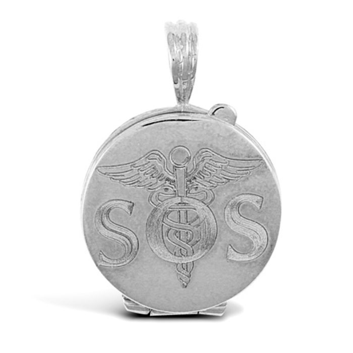 Sterling silver engraved medical emergency awareness SOS necklace.