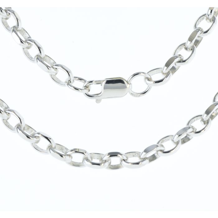 Sterling silver faceted belcher 5mm chain necklace.Available in lengths 18, 20, 22, 24, 26 and 30 inch.Approximate chain weights are:18 inch = 27 grams.20 inch = 30 grams.22 inch = 33 grams.24 inch = 36 grams.26 inch = 39 grams.30 inch = 45 grams.The chain will come to you in a black leatherette gift box with a World of Jewellery cleaning cloth.