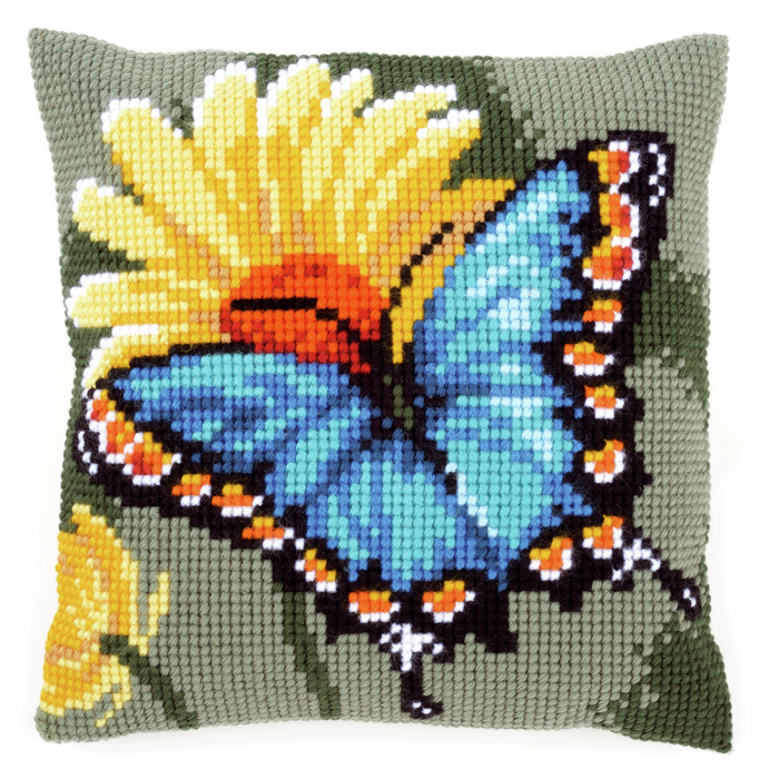 Description / Vervaco Butterfly & Yellow Flower Cushion Cross Stitch Kit